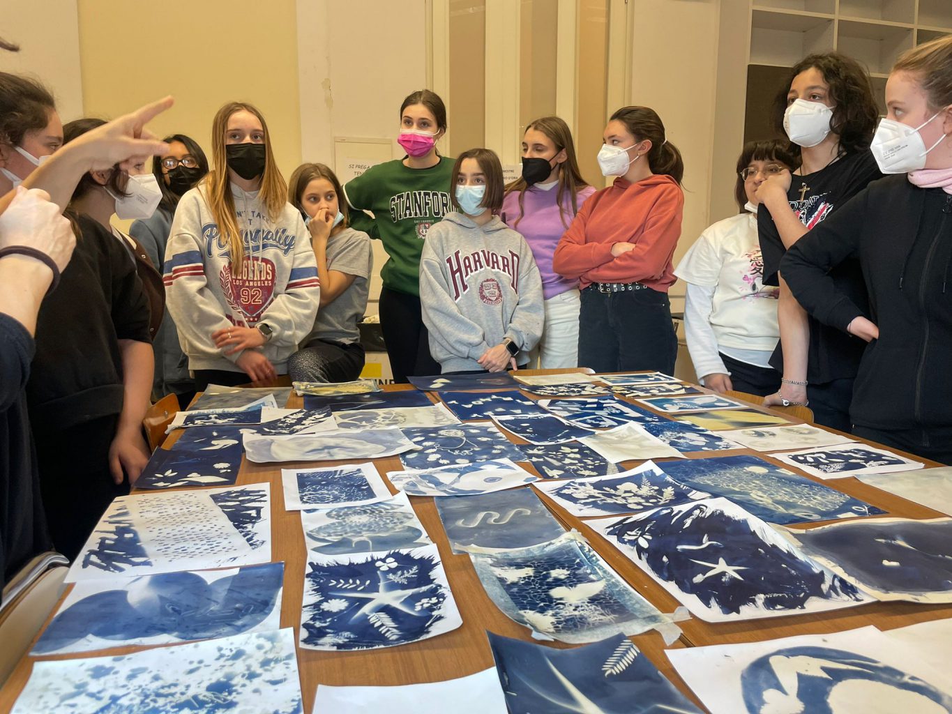 In questo secondo quadrimestre la scuola propone agli studenti delle classi terze medie un laboratorio opzionale pomeridiano di fotografia a contatto o CIANOTIPIA