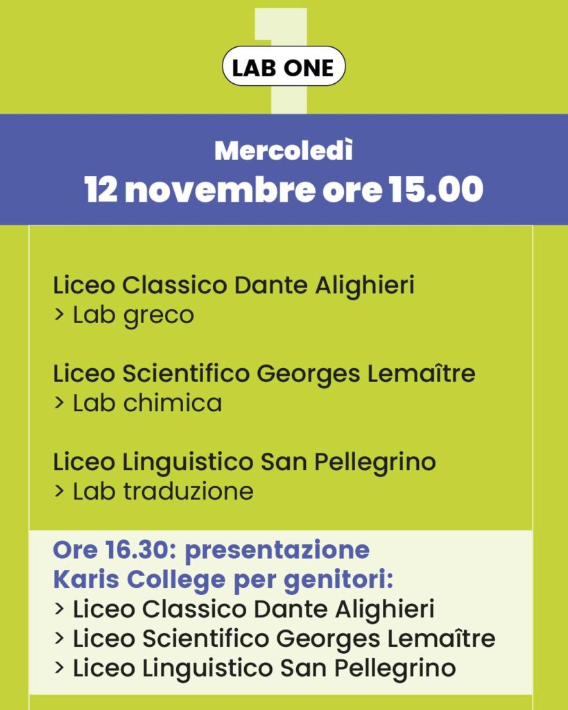 PRIMA DEGLI OPEN DAY, PARTECIPA AI KARIS LAB